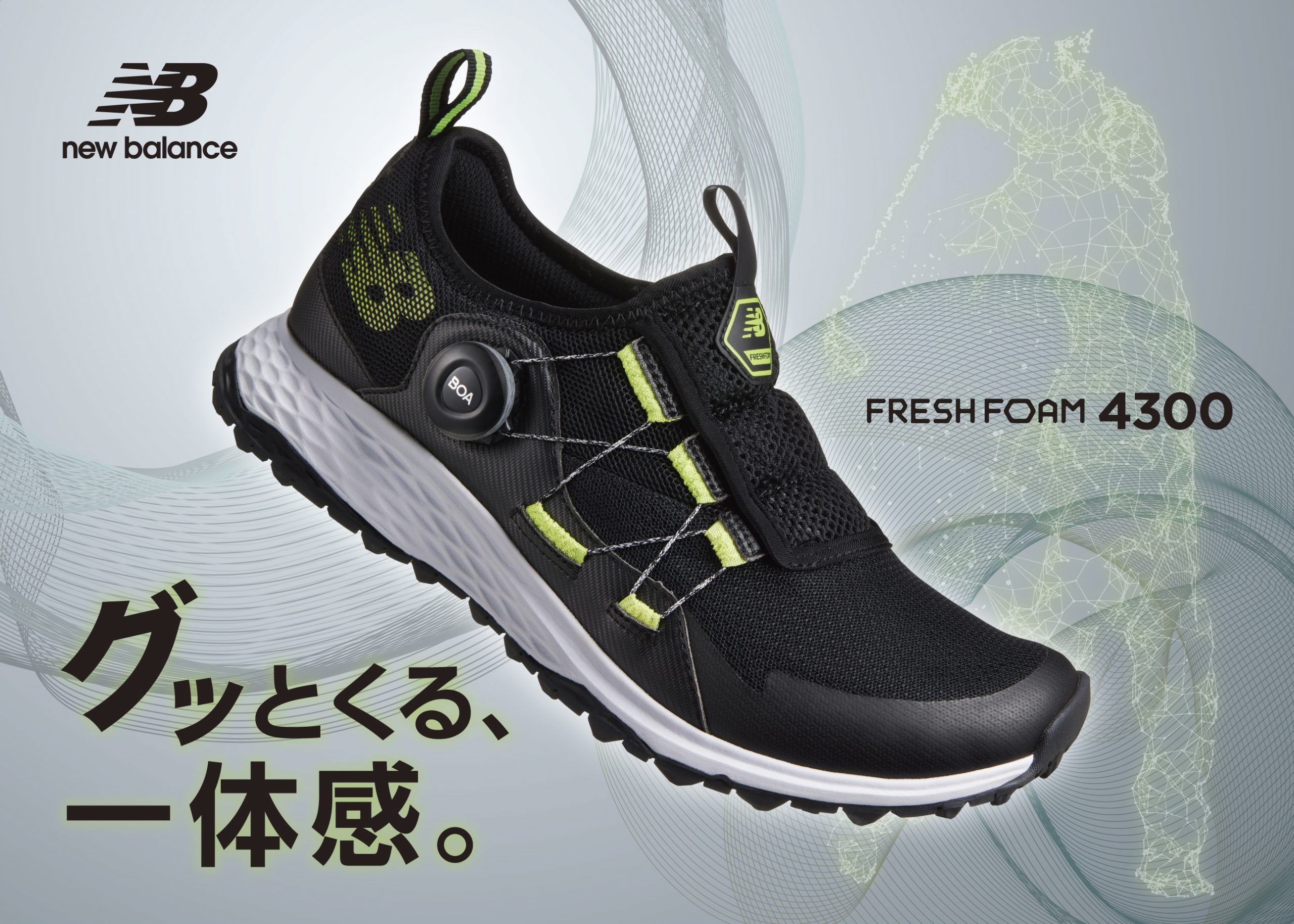 生体力学に基づき配置した甲部の3本パネルとBOA®フィットシステムが連動した“パフォーマンスフィット構造”のもと、卓越したフィット性とサポート性を提供。足の横ブレを抑え、正確なスイングと快適な歩行を実現します。通気性抜群のメッシュアッパー、クッション性と安定性に優れた「FRESH FOAM」ミッドソール、高いグリップ性を発揮するアウトソールとともに、、18ホール歩いてラウンドするプレーヤーのパフォーマンスアップに貢献します。