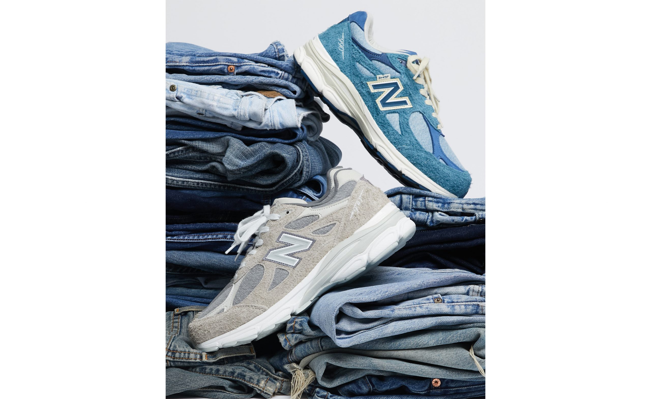 本コラボレーションモデル「LEVI’S® x NEW BALANCE® 990v3 」は、それぞれのブランドのシグネチャーのトーンに合わせて、インディゴとグレーの二つのカラーウェイで登場します。各バージョンとも、Levi’s®独自のShrink-To-Fit™デニムと、アイコニックなLevi’s®の毛羽だったバックパッチにインスパイアされた毛足の長いヘアリースウェードのオーバーレイにヌバックのアクセントを採用。右足外側のNロゴにはLevi’s® タブが付いたスペシャル仕様です。「LEVI’S® x NEW BALANCE® 990v3」は、両社が誇るMade in U.S.A.であり、デニムの生産のために発明されたShrink-to-Fit™のテクノロジーをシューズに採用することで、格別のフィット感を生み出します。
