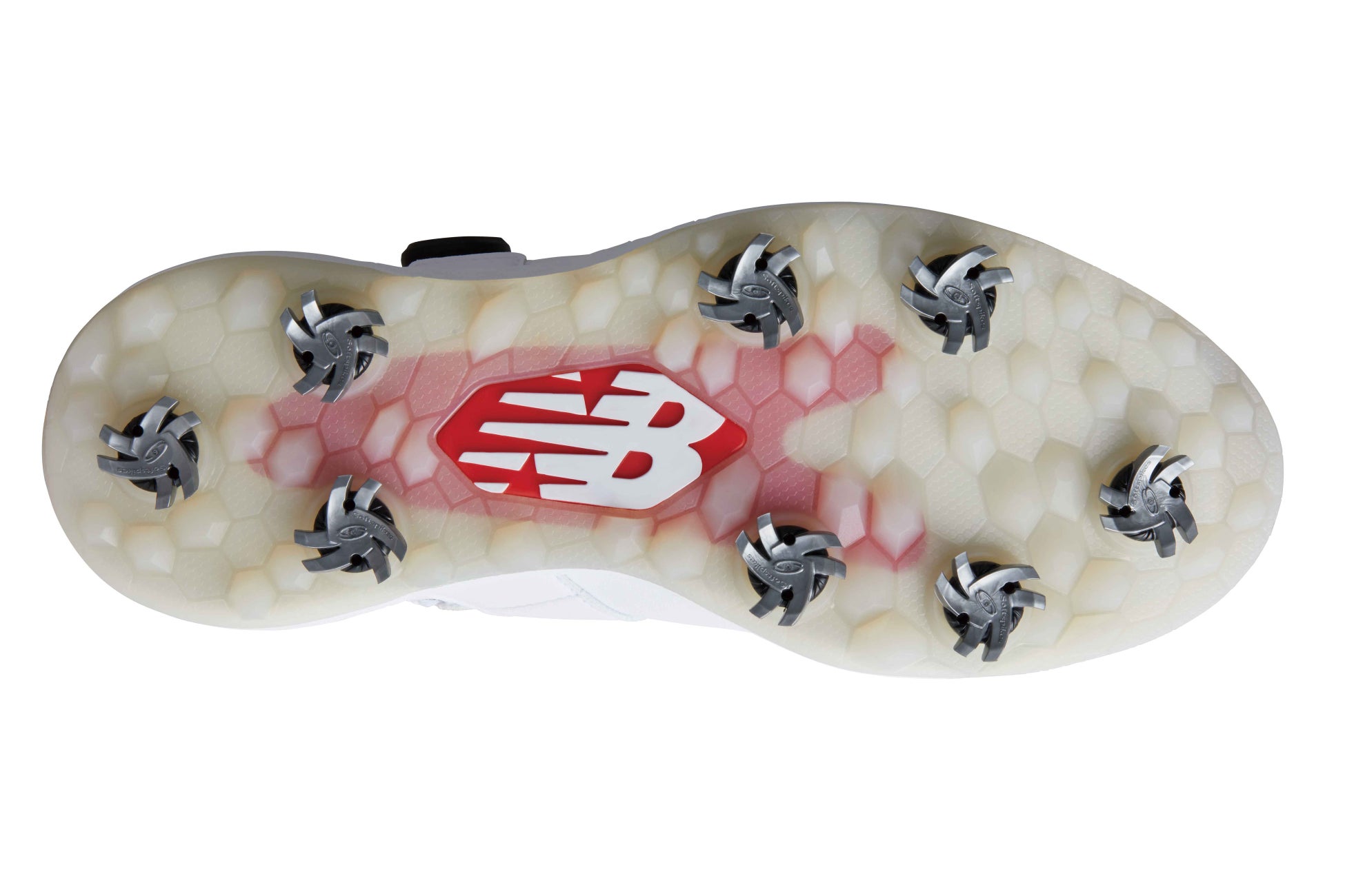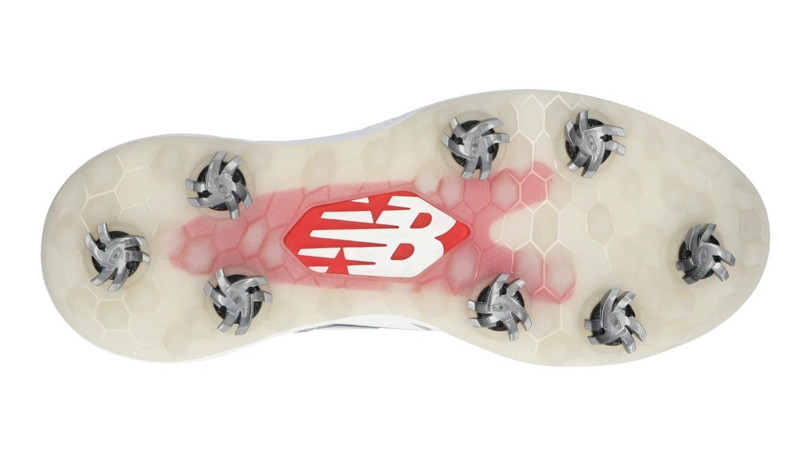 抜群のクッション性を誇るニューバランス独自のミッドソール「FRESH FOAM X」、ねじれを制御するTPUプレートを採用。さらに外付けの「CR COUNTER」でヒール部をしっかりホールドし、スイング時の横ブレを制御します。快適なクッション性と安定性が組み合わさり、歩行とスウィングをサポートします。