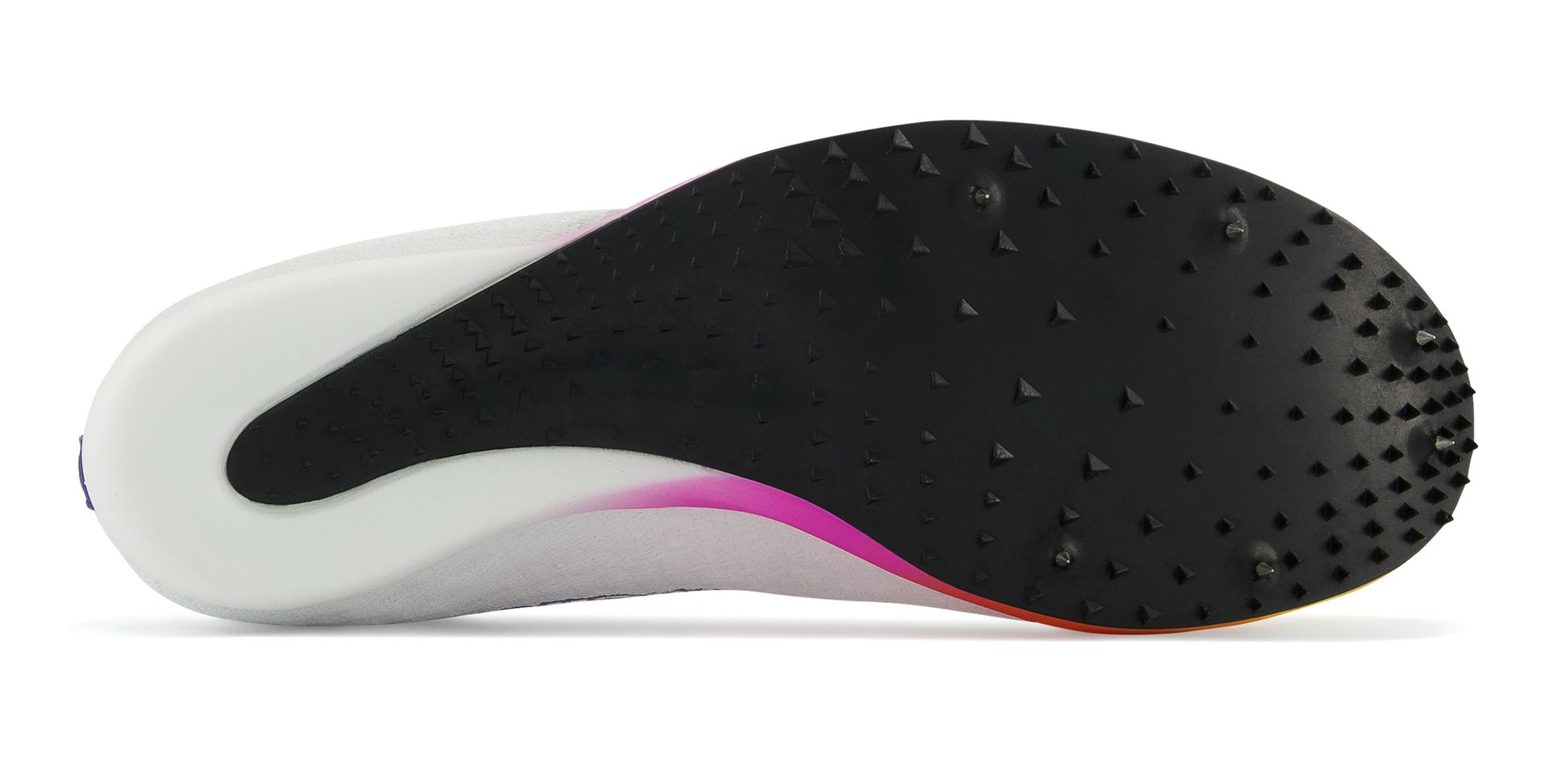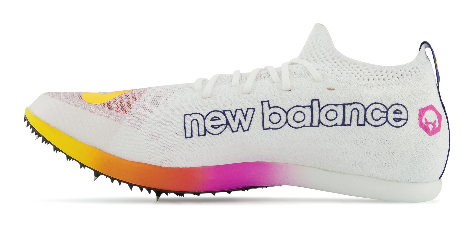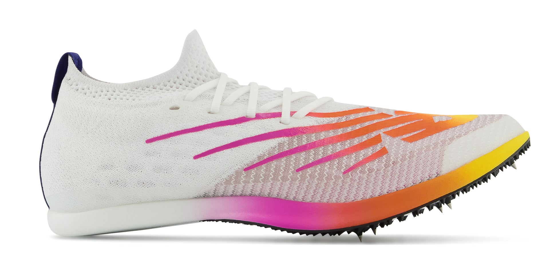 田中希実選手の2021年1000m、1500mの日本記録を支えた、ニューバランス史上初のカーボンプレート採用、トラックスパイク「FuelCell MD-X(フューエルセル エムディーエックス)」が登場。カーボンプレートとの相乗効果で推進力に加速度をつけるFuelCellソール、軽量化を推進する埋め込み型の6ピン、足と一体化するソックスタイプのニットアッパーを、明るくポジティブなVIBRANTカラーで彩り、ユニセックスサイズで展開します。