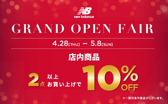 店内商品2点以上ご購入で10%OFFとなるキャンペーンを開催いたします。人気のサイズやカラーは品薄となりやすいので、ぜひお早めにご来店ください。