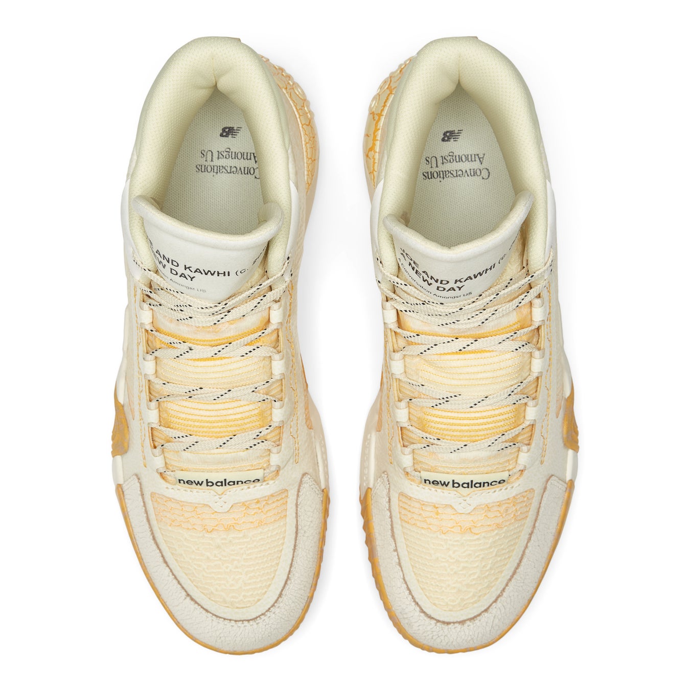 今回の「THE KAWHI Ⅱ」の新色は、「Conversations Amongst Us」をテーマにブラックコミュニティの日常を表現。ブラックコミュニティで定番スニーカーであるホワイトスニーカーからインスパイアされ、ホワイトスニーカーを履きこむことで生まれるイエローイングがカラーコンセプト。イエローは、プラス思考のマインドやエネルギー、そして幸福感を表現したカラーで「THE KAWHI Ⅱ」をブラッシュアップ。アッパーのタンラベルとインソールには、テーマの「Conversations Amongst Us」を施したスペシャルな1足です。