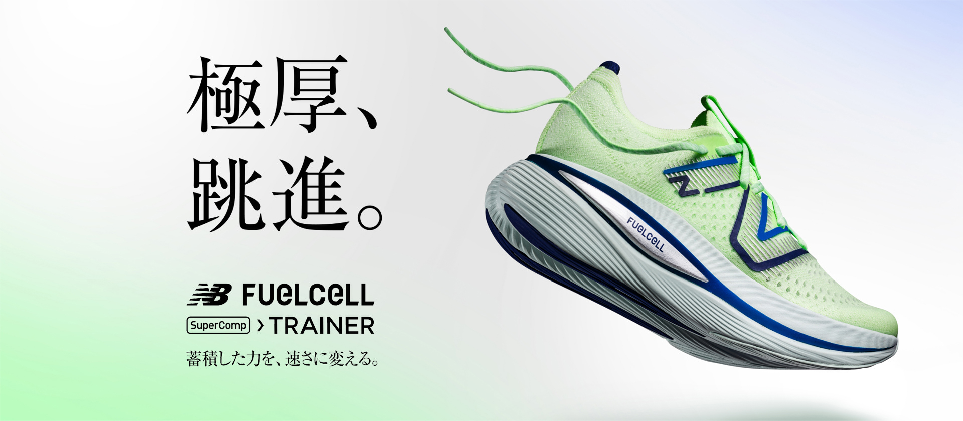 ランナーが最も求める“スピード”を身につけるため、ニューバランスが作り上げた圧倒的な反発弾性の「FuelCell SuperComp TRAINER(フューエルセル スーパーコンプ トレーナー)」が登場。FuelCell史上最も厚い40mmを超えるミッドソールは、アーク(弓形)状のカーボンファイバープレートと空洞を設けた高反発なFuelCellミッドソールとのシナジーでエナジーリターンを最大化する最新のENERGY ARC(エナジーアーク)を搭載。ルールを超えた(※)規格外の新作は、ランナーにかつてないスピード体験をもたらします。6月25日(土)よりニューバランス公式オンラインストアストアおよびニューバランスオフィシャルストア、その他一部のニューバランス取り扱い店舗にて発売します。