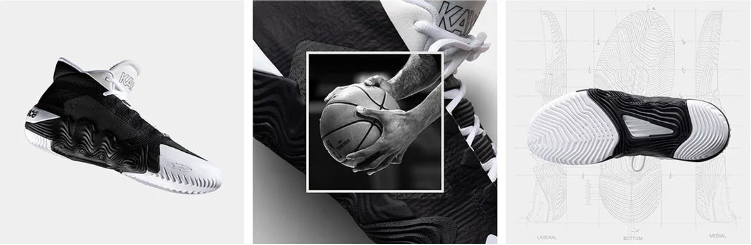 シンプルかつタイムレスなカラーリングは、カワイ・レナード選手のキャリアの中で記憶に残る「消灯」の瞬間に敬意を表しています。ブラックとホワイトを交互に配置し、クラシックなコントラストを生み出しています。アッパーには軽量で優れたフィット感をもたらすFit Weave bLite、ウェービング加工されたキネステッチ、PUフィルムの組み合わせとなっており、シンプルでありながら美しい仕上がりのディティールです。