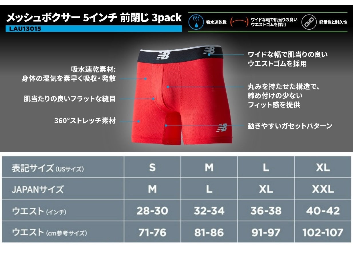 【メッシュボクサーパンツ5インチ前閉じ3pack】