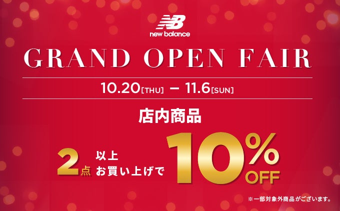 ニューバランスジャパンは、10月20日(木)に「ニューバランスファクトリーストアふかや花園」をグランドオープンいたします。