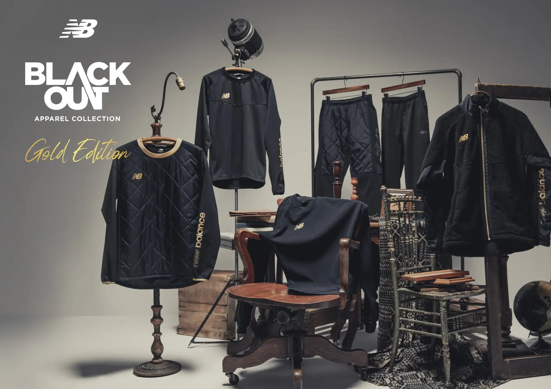 ニューバランス フットボールアパレルから、先月発売したコレクション「Black Out Apparel Collection Gold Edition(ブラックアウトアパレルコレクション ゴールドエディション)」の冬の新作を発表します。Black Out Apparel Collection Gold Editionとは“そもそも派手な色のウエアなんて必要ない。みんなそれぞれ個性があり、誰色にも染まりたくない。ジブンのチームには歴史も文化もカラーもあり、そのユニフォームを着て試合で勝負する。でも普段の練習では、自分の思う理想に近づけるようにトレーニングする。未来のジブンを想像し、極限まで鍛えぬいてイメージするプレーヤーにぜひ着てほしい ”という思いを込めたデザインです。移動からプレーまで幅広く着用できるラインナップに寒い時期にも着用したままプレーできるアイテムが追加されました。ぜひこの冬をBlack Out Apparel Collection Gold Editionで乗り切りましょう。