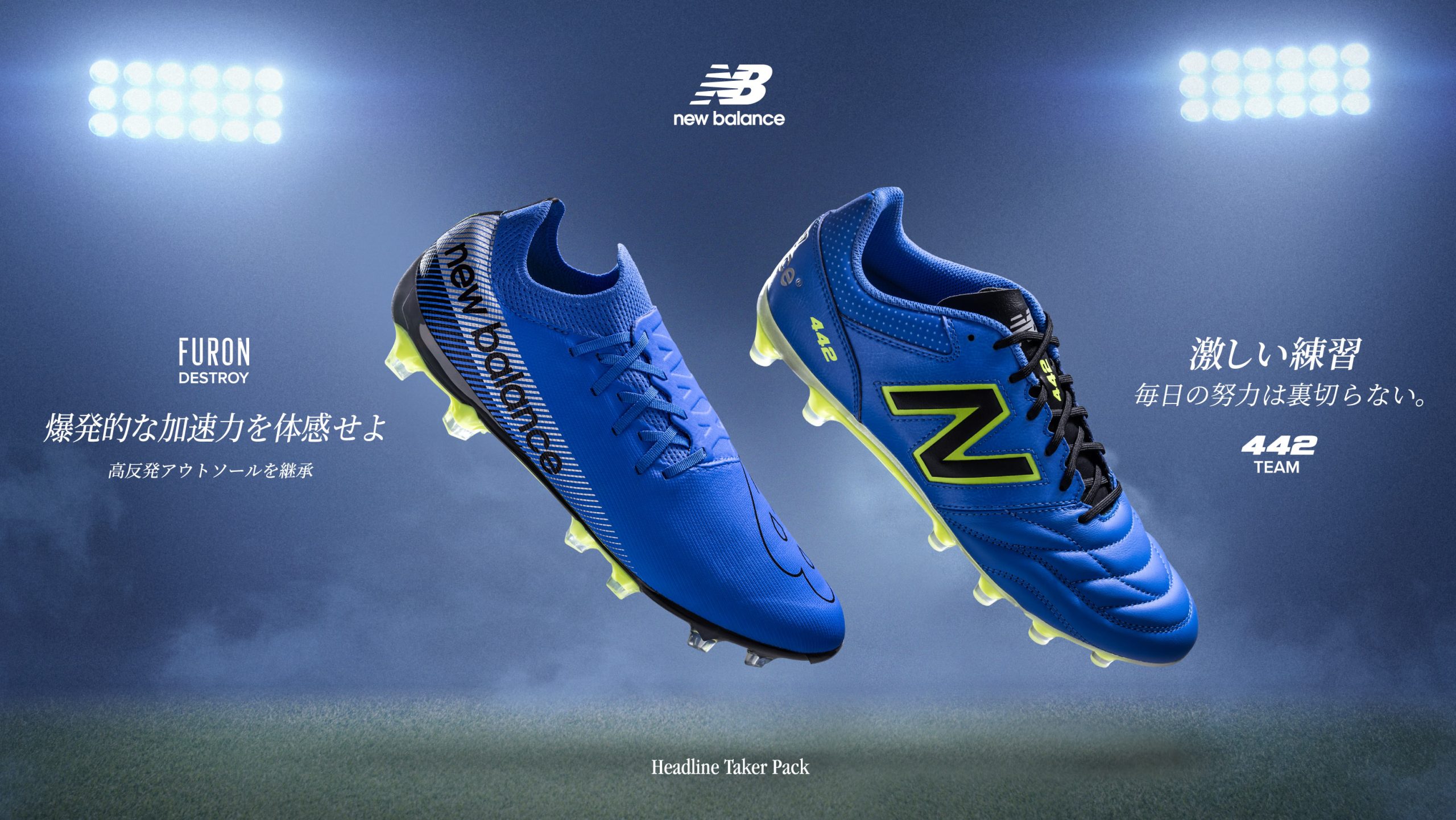ニューバランスジャパンは、爆発的な加速力を生み出すスピード系フットボールスパイクFuron Destroy(フューロンデストロイ)」と毎日の激しい練習に最適な、フルグレインレザーの足なじみの良さと耐久性を両立した「442 v2 Team(チーム)」をニューバランス公式オンラインストア、ニューバランス原宿、その他ニューバランス取扱店舗にて発売中。