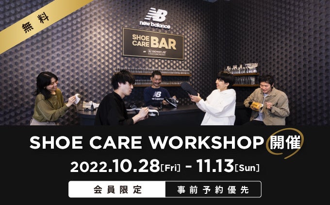 今回6周年を記念し、myNB会員様限定で「SHOE CARE WORKSHOP」を期間限定にて開催いたします。お客様ご自身がニューバランスシューズを100%天然由来成分の「SNEAKER LAB(スニーカーラボ)」を使用し、キレイにケアするワークショップとなります。また、ご参加後アンケートにご回答いただくと、4階カフェにてお好きなドリンクをプレゼントいたします。事前予約優先となりますので、ぜひご希望のお時間をご予約の上ご来店ください。対象期間:10月28日(金) ~11月13日(日)