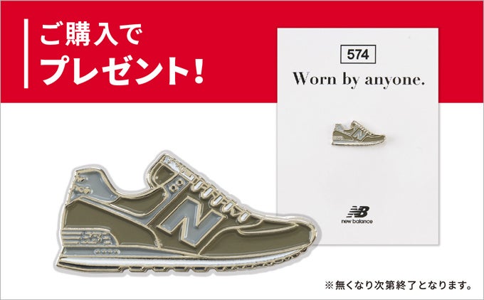 ※ファクトリーストア仙台泉はアパレルの取扱いがございませんので、「574シューズピンバッチ」のプレゼント条件は、店内全商品が対象となります。