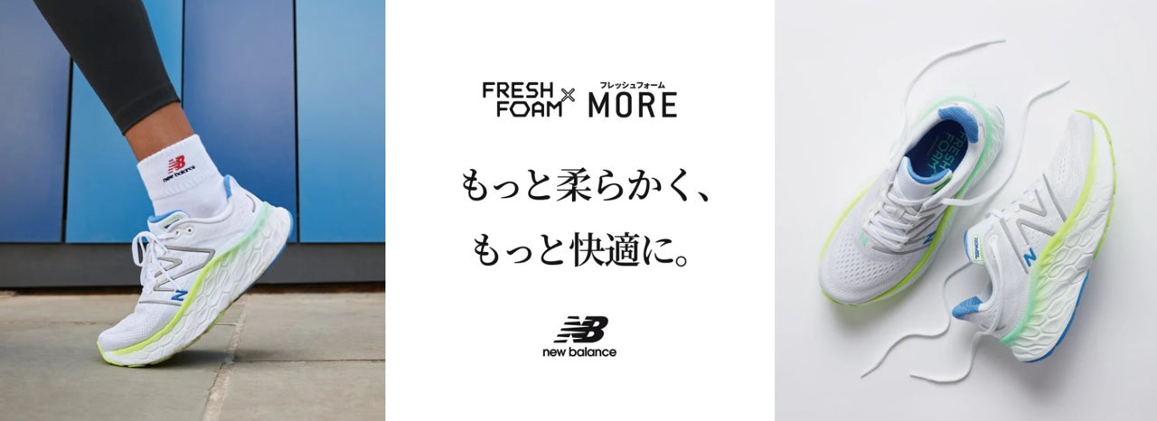 ニューバランスランニングの中でもクッション性に優れた「Fresh Foam(フレッシュフォーム)」シリーズから、シリーズ史上最も厚く、やわらかいFresh Faom Xミッドソールを有する象徴も出る「MORE」。新パターンのアウトソールが重心移動をスムーズに支え、安定感を発揮します。もっと長く走りたくなるようなライド感を提供します。