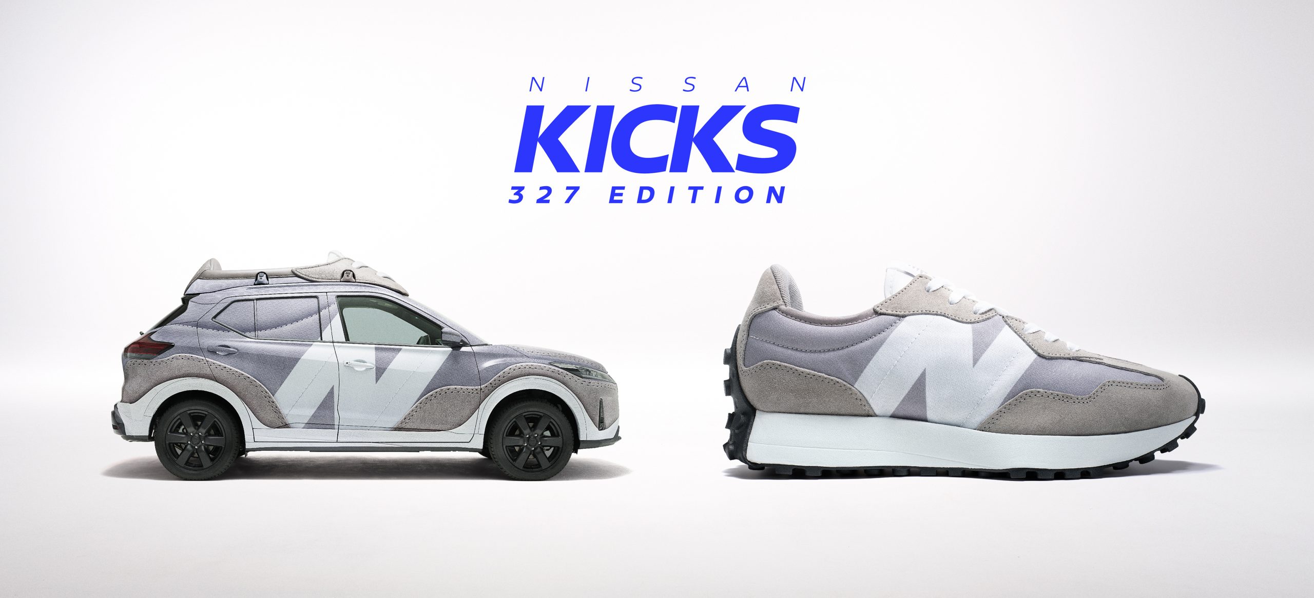「日産キックス」の車名“KICKS”には、英語のスラングで「スニーカー」の意味があります。この名前にふさわしく軽快な乗り心地で日常をアクティブにするSUV 「日産キックス e-POWER 4WD」の魅力を多くの方に知っていただくため、ニューバランスのライフスタイルシューズ「327」のラッピングを施した世界に一台だけの「NISSAN KICKS 327 EDITION」を共同製作しました。街中にぴったりなスタイリッシュさに加え、軽い履き心地と、ソールの高いグリップ性により、シーンを選ばず履くことができる「327」は、SUVらしいスタイリッシュな外観を持ち、軽やかで地面に吸い付くような意のままの走りで街中やオフロードなどシーンを選ばず運転を楽しむことができる「日産KICKS e-POWER 4WD」とのコンセプトとマッチすると考えました。