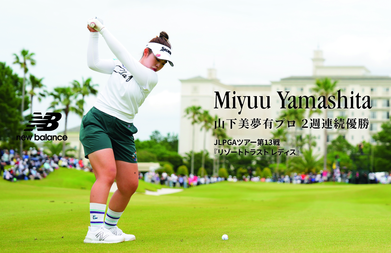 ニューバランスゴルフ フットウェア契約選手である山下美夢有プロが、5月28日(日)に最終日を迎えた、JLPGAツアー2023シーズン第13戦「リゾートトラスト レディス」で、通算21アンダーで2週連続優勝を果たしました。今季3勝目、ツアー通算9勝目であり、JLPGAツアー史上初の4日間競技での快挙となりました。今後の活躍も期待されます。ニューバランスは山下プロの挑戦をこれからも応援いたします。