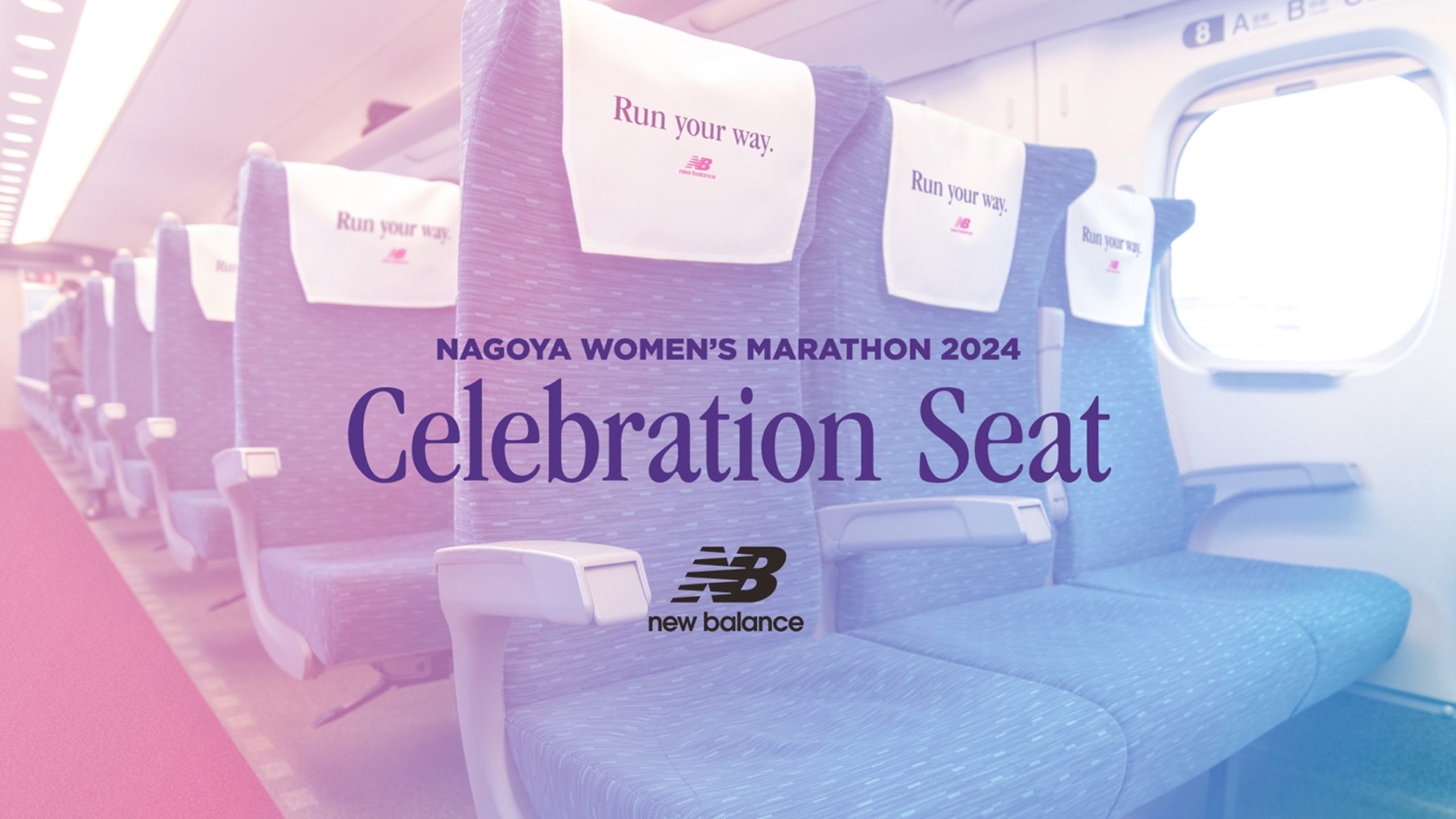 この度「名古屋ウィメンズマラソン2024」に参加のランナーをセレブレートするキャンペーンとして、名古屋から東京への帰路の新幹線を1両貸し切りしてランナーをおもてなしする「名古屋ウィメンズマラソン2024 セレブレーションシート」をご用意しました。「名古屋ウィメンズマラソン2024」にエントリーし、対象期間中にニューバランス公式オンラインストアにて対象商品のランニングシューズ・アパレル・アクセサリ・パフォーマンスアパレルを10,000円(税込)以上ご購入いただいた方の中から、抽選で20名様をご招待いたします。