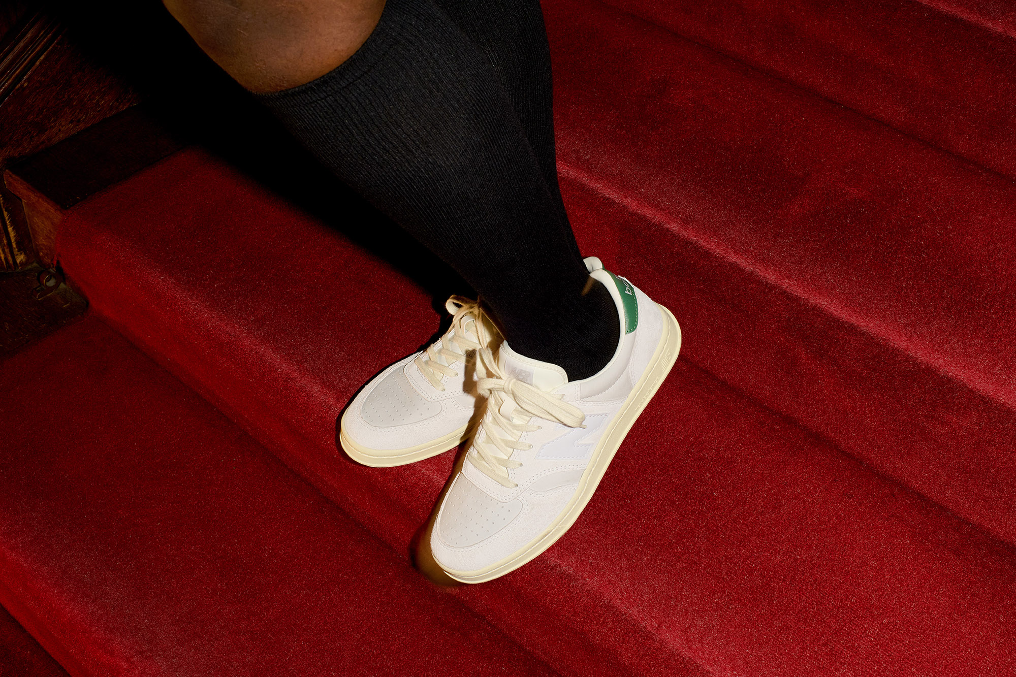 アッパーにはピッグスキンスエード、ヌバックを採用し、つま先部分にはパンチング加工を施し、親しみのあるデザインに高級感をプラスしています。ポリウレタンのミッドソールは1980年代のテクノロジーを表現し、旧モデルのバルカナイズドソールとは一線を画しています。白を基調としたエレガントでシンプルなデザインは、どんなシーンにもマッチします。