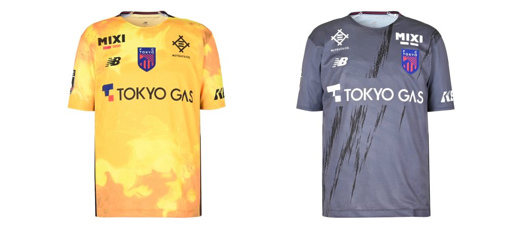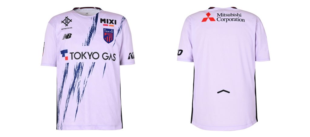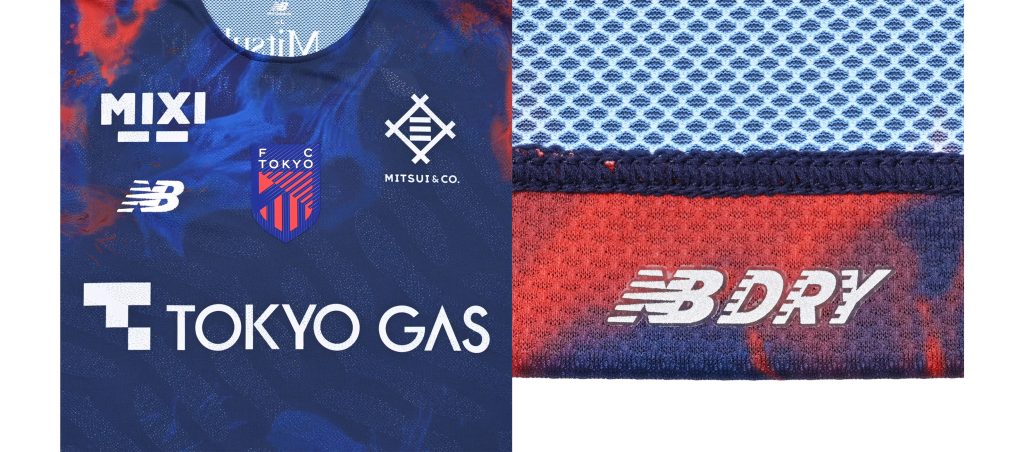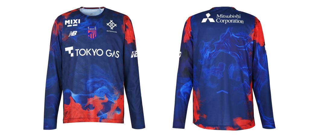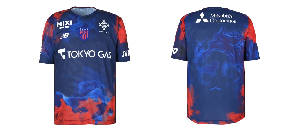 1st KITにはクラブスローガンである『東京が熱狂』を表した、躍動する“炎”をモチーフとしたデザイン。青い炎は冷静さ、安定感、赤い炎は、情熱を表現し、ストライプデザインの枠を超えて、両方の炎が合わさる事で、強さ・勢いを象徴しています。