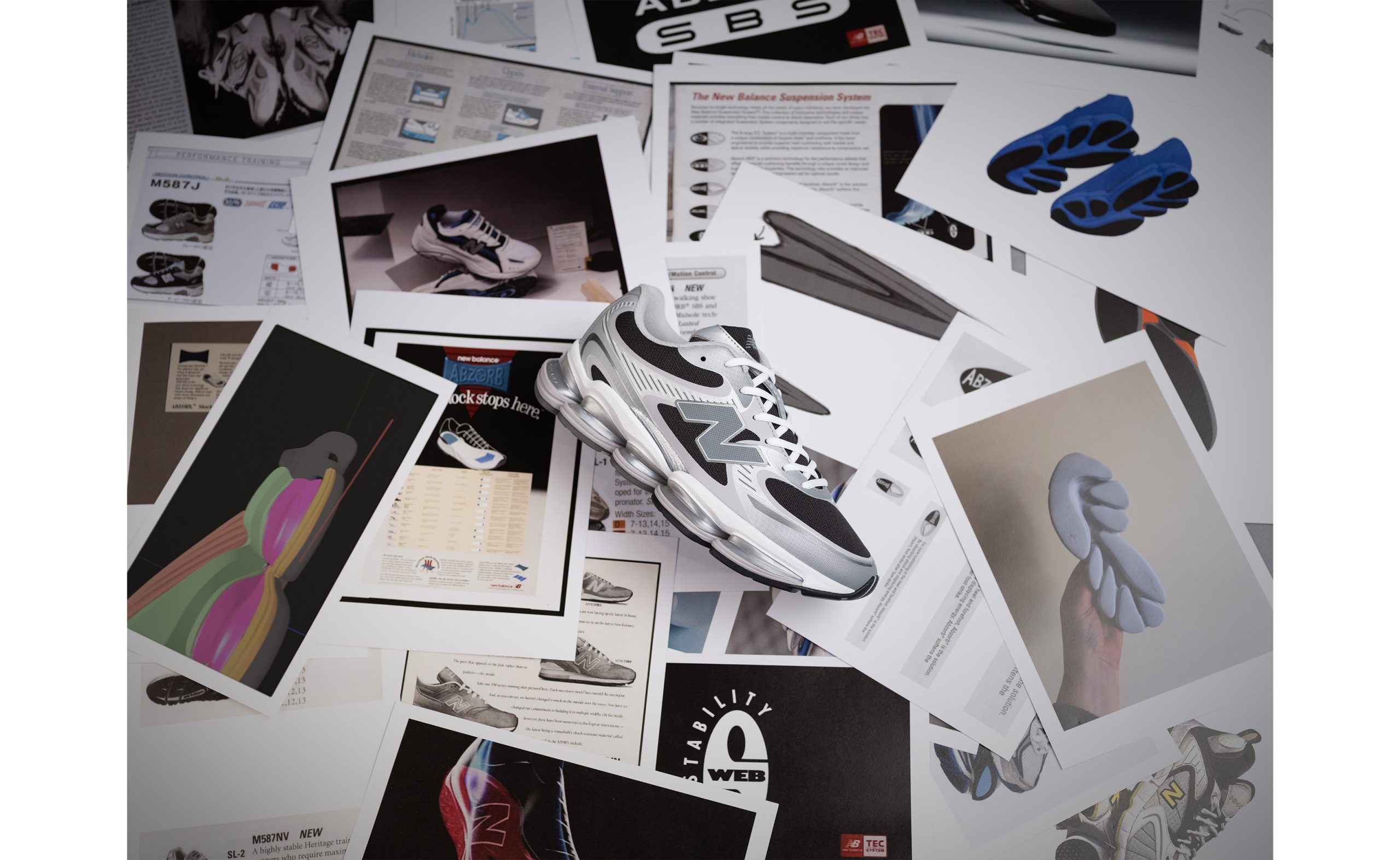 シャーロット・リーのデザインに迫ったムービーでは、彼女の世界観と、デザインプロセスにおける“コントロールされたカオス”を垣間見ることができます。「ABZORB 2000」はニューバランスの過去モデルと最新モデルの間で、ブランドのDNAへのオマージュを示しています。付箋に描かれた一枚のスケッチが3Dレンダーへと切り替わり、シャーロット・リーがシューズのビジュアル的特徴を紹介しています。