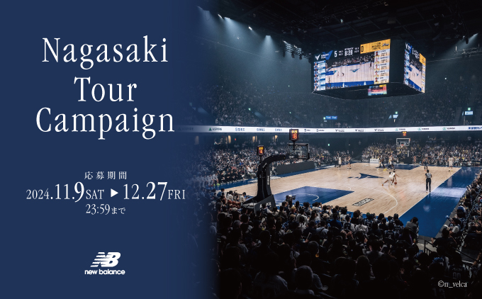 2024-25年シーズンより、長崎ヴェルカのオフィシャルサプライヤーとして日本初となるB.LEAGUEパートナーとなりました。その初めてのシーズンを記念して、11月9日(土)より対象商品をご購入のお客様に抽選で長崎ヴェルカの試合観戦と長崎旅行1泊2日ツアーが当たる「長崎ツアーキャンペーン」を開催いたします。 キャンペーン詳細 【キャンペーン期間】11月9日(土)~12月27日(金) 【応募期間】11月9日(土)~12月27日(金)23:59 【対象店舗】ニューバランス原宿、長崎スタジアムシティ、公式オンラインストア※その他の直営店舗、公式オンラインアウトレットは対象外となります。 【応募条件】