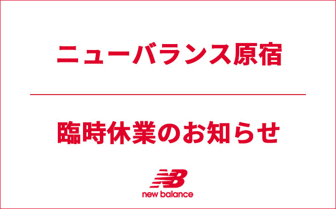 2024.08.13 2024年9月2日(月)~9月5日(木)まで店内改装工事のため臨時休業 ニューバランス原宿は下記日付を、店内改装工事のため臨時休業とさせていただきます。お客様には大変ご迷惑をお掛けいたしますが、何卒ご理解賜ります様お願い申し上げます。 臨時休業:2024年9月2日(月)~9月5日(木) お客様には大変ご迷惑をお掛けいたしますが、何卒ご理解賜ります様お願い申し上げます。 2024年8月13日株式会社ニューバランスジャパン