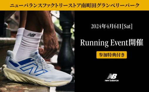 2024年4月20日(土)、ニューバランスファクトリーストア ジ アウトレット湘南平塚にて、2つのコンテンツをご用意したランニングイベントを開催いたします。 1日限りのイベントとなりますが、「身体を楽しく動かすランニング」をテーマとした、プロのランニングコーチと一緒に走る事前予約制のイベントと、足のサイズをお測りしランニングシューズの試し履きができるFIT PARKイベントをご用意いたしました。 ご参加いただいた皆さまに、ニューバランス公式ストアアプリから当日店舗で使用できる10%offクーポンを差し上げます。 ぜひ、お気軽にご参加ください。 【事前予約制】ランニングイベント詳細 ■実施日20