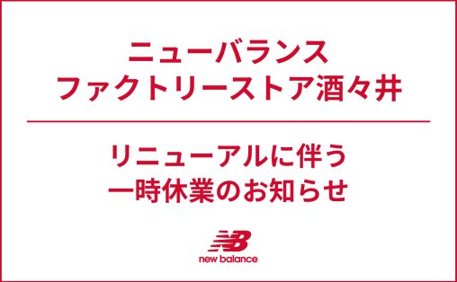 2025.10.24 2025年11月7日(金)店舗メンテナンスのため営業時間変更 ニューバランス福岡は下記日付を、店舗メンテナンスのため営業時間を変更させていただきます。 =====営業時間変更日:2025年11月7日(金)営業時間:14:00~ 19:00===== お客様には大変ご迷惑をお掛けいたしますが、何卒ご理解賜ります様お願い申し上げます。 2025年10月24日株式会社ニューバランスジャパン