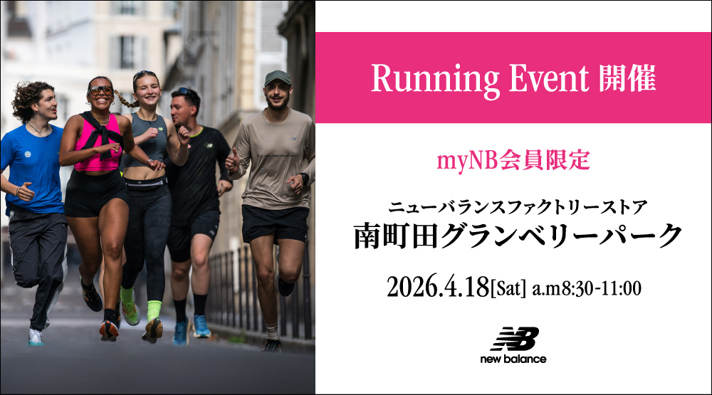好評につき、再び。試し履きランニングイベント開催。 前回ご好評いただいたランニングイベントを、ニューバランスファクトリーストア南町田グランベリーパークにて再び開催します。 今回のイベントは、体力づくりや健康維持、初めてのレース参加を目指す方に向けた初・中級者向けランニングイベントです。シューズ選びや足の計測、楽に走るための身体の使い方を学びながら、実際にランニングを体験していただきます。スタッフやコーチと一緒に走りながら、自分に合うシューズと走り方を見つける朝。ランニングをもっと楽しむきっかけを、ニューバランスと一緒に体験してください。試し履きランニングシューズには、 Fresh Foam X