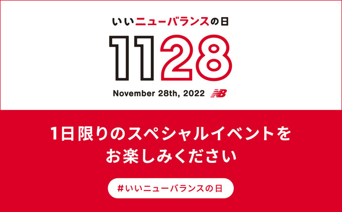 ニューバランス直営店舗43店舗にて、2022年11月28日(月)に1日限りのスペシャルイベントを開催いたします。 毎年11月28日を「いいニューバランスの日」として、日頃のご愛顧に感謝し各店舗がこの日の為に準備し、店舗ごとに異なるスペシャルコンテンツを企画いたしました。 ご来店で「ニューバランス ヒストリークリアファイル」や、アパレルを含む8,000円(税込)以上ご購入で「574シューズピンバッチ」を、各店先着順にてプレゼントもご用意! 1日限定の体験イベントやクイズ、お客様へのご提案などそれぞれの店舗でお客様がリアルに体験できます。 ニューバランスの直営店舗では、ご購入後も長く愛用していただ