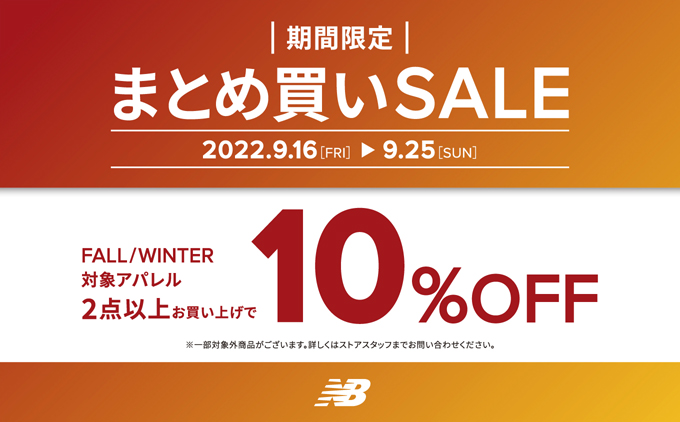 【オフィシャルストア限定】対象アパレル「まとめ買いSALE」開催 9/16(金)スタート。人気のライフスタイルアパレル「MET24」の2022年秋冬の新作や、秋のランニングシーズンにピッタリの機能性アパレルも豊富にラインナップ。お買い得にお求めいただける、この機会をお見逃しなく! 「まとめ買いSALE」詳細 【期間】9/16(金)~9/25(日) 【対象店舗】オフィシャルストア全店※公式オンラインストア、オンラインアウトレット、ファクトリーストア、コンセプトストアは対象外となります。 【対象外商品】MMade in USAアパレル、TDSなど一部対象外商品がございます。 おすすめ商品のご紹介