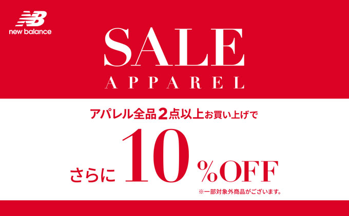 7/21(水)よりオフィシャルストア全店にて、アパレル2点以上ご購入で10%OFFとなる、「Buy 2Get 10%OFFキャンペーン」を開催いたします。これから迎える夏にピッタリ! オフィシャルストアではデザインだけでなく、機能性アパレルを多数ラインナップしています。 お買い得にお求めいただける、この機会をお見逃しなく! 「Buy 2Get 10%OFFキャンペーン」詳細 【期間】7/21(水) ~ 8/15(日) 【対象店舗】オフィシャルストア※ニューバランス阪急うめだ本店は対象外となります。※ニューバランス名古屋は移転のため、7/19(月)~8/5(木)まで一時休業となります。※公式オン