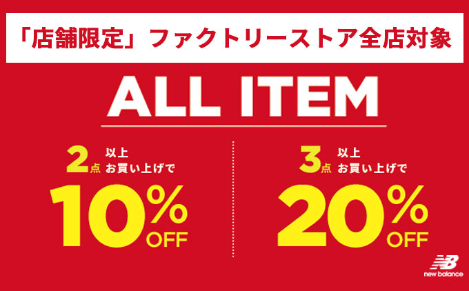 ニューバランスファクトリーストア限定で「まとめ買いSALE」を12/26(木)~31(火)の期間中に開催いたします。これからの季節に重宝するアウターを始め、ランニングやライフスタイルシューズの新商品が入荷し豊富なラインナップをご用意しています。お買い得となるこの機会に、ファクトリーストアでのショッピングをお楽しみください。 スタッフ一同、ご来店心よりお待ちしております。 【開催期間】 12/26(木)~31(火) 【開催店舗】 ファクトリーストア全店 ※オフィシャルストア、公式オンラインストア、公式アウトレットオンラインでは開催しておりません。 ※年末年始の営業は、店舗によって異なります。詳細