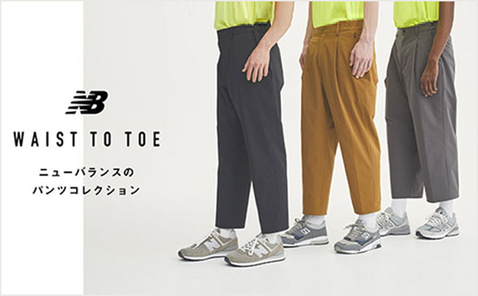 2019年6月14日(金)より、腰からつま先までという名の付いたニューバランスから生まれたニューバランスのための新生パンツコレクション「WAIST TO TOE」の第2弾を販売します。 ニューバランスのシューズをキレイに見せる5つのシルエット(STRAIGHT、SKINNY、SLIM TAPERED、WIDE TAPERED、WIDE)がラインナップ。シュータンからの1インチ(約2.5cm)の空白にこだわったパンツです。 第2弾は、定番のブラックに加え、ブラウンとグレーが新たに加わり全3色展開。 素材には、ソロテックス®を採用し、ストレッチ性と撥水性、優れた形態回復性を実現。 取り扱いはオフィ
