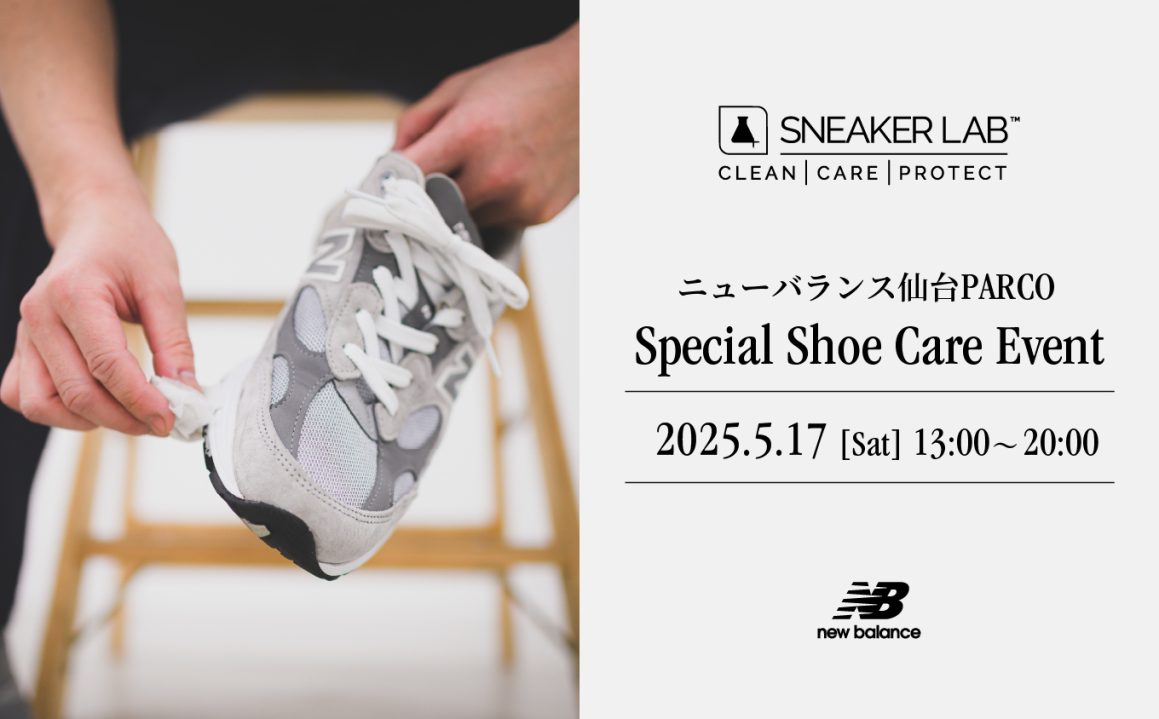 Special Shoe Care Event開催 ニューバランス仙台PARCOにて、「Special Shoe Care Event」を開催いたします。お気に入りのシューズを長く愛用するために、100%天然由来成分の「SNEAKER LAB」を使用したシューケアのワークショップとなります。様々な素材を組み合わせたシューズも、知識が豊富なSNEAKER LABシューケアスペシャリストやストアスタッフが綺麗にケアする方法をレクチャーいたしますので、ワークショップの後も、ご自身でケアを続けるアドバイスを受けられる内容となっています。 各枠1回3名様が一緒に行うイベントとなりますので、ぜひご家族ご友