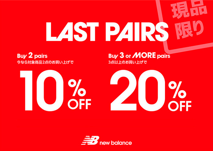 セール期間中のおトクなキャンペーンをご紹介! 神戸店では6/3(金)〜6/12(日)のサマーセール期間中“現品商品に限り2点の購入で10%OFF、3点以上の購入で20%OFFになる”キャンペーンを開催中です! 掘り出し物を見つけるチャンスです! その他オススメのモデルをピックアップ! W650(左・ウィメンズ)、M650(右・メンズ) PRICE:アウトレット価格 体を動かしたくなるこれからの季節に、レーシングラストを採用したライトウェイトなランニングモデル。 WL574(ウィメンズ) PRICE:アウトレット価格 カジュアルユースでの大人気モデル「574」もアウト