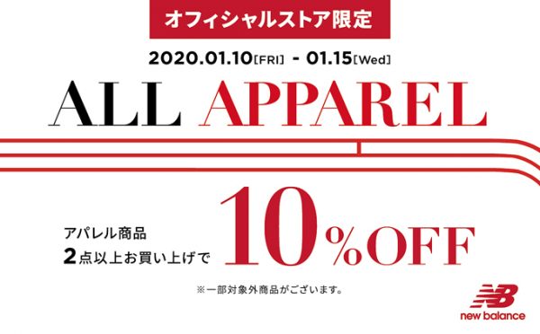 【オフィシャルストア限定】1/10(金)~15(水)までアパレル2点以上ご購入で、10%OFF!