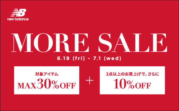 ニューバランスオフィシャルストア、公式オンラインストアにて 6月19 日(金)より“MORE SALE”開催
