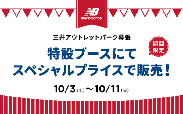 【期間限定】 三井アウトレットパーク幕張内、特設ブースにて ニューバランスシューズ・アパレルが正規販売時価格よりMAX80%OFF