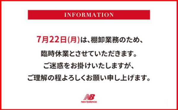 ニューバランスストア年末年始に伴う営業時間のご案内
