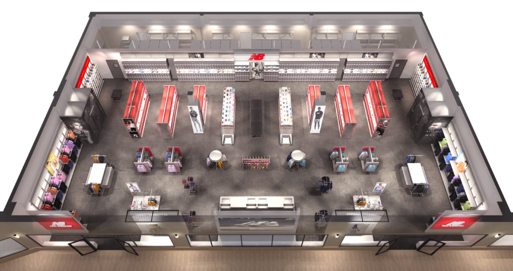 店内は売場面積が増床となり、人気のライフスタイルシューズだけでなく、ランニングシューズ、キッズシューズ、アパレル、アクセサリーまで充実したラインナップとなりリニューアルオープンいたします。グローバルファクトリーアウトレットのストアデザインを採用しブランドカラーの赤を基調としたシンメトリーを意識した什器配置のため、ショッピングがしやすいお店となっています。
