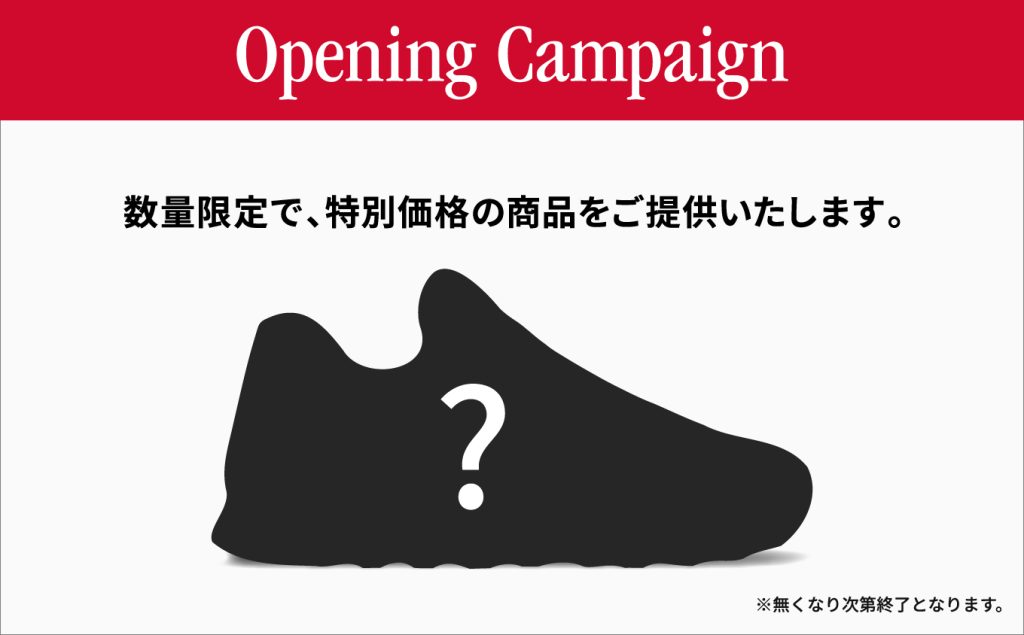 グランドオープンを記念し、数量限定の人気シューズを特別価格にてご用意しております。