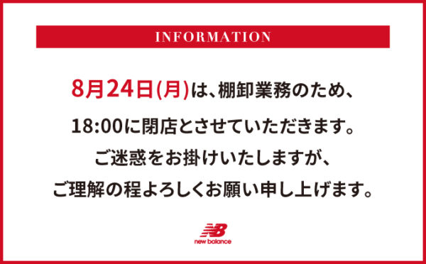 8/24(月)原宿店 棚卸業務のため18:00閉店